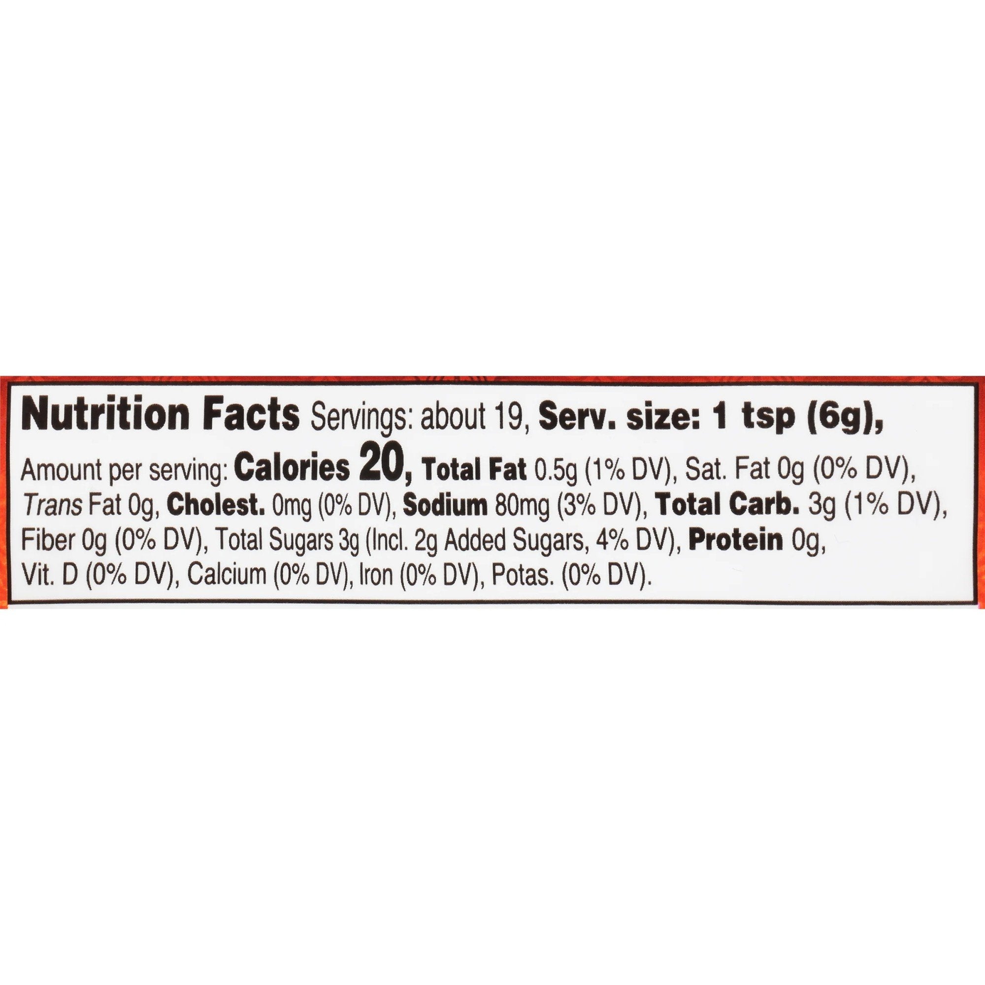 | Serving Size: 1 tsp (6 g) | Servings Per Container: about 19 |