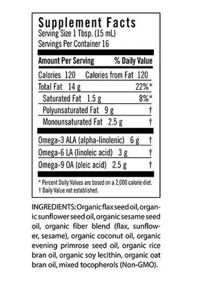 Other Ingredients:Organic flax seed oil, organic sunflower seed oil, organic sesame seed oil, organic coconut oil, organic evening primrose seed oil, organic rice bran oil, organic soy lecithin, organic oat bran oil, mixed tocopherols (Non-GMO).
